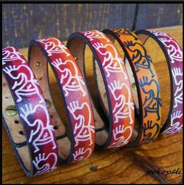 - Originální ručně malovaný a rytý náramek z pravé kůže.