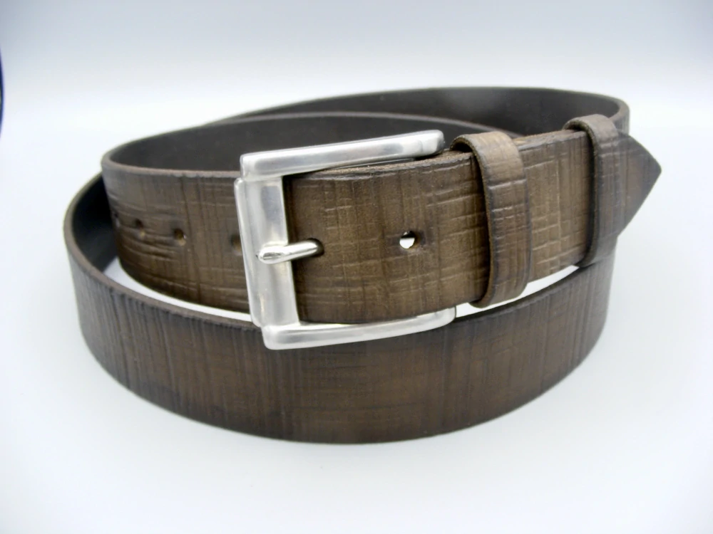 - Opasek z pravé hovězí kůže síly 3,5-4 mm a velmi kvalitní, pevné spony z leštěné nerezové oceli. Po domluvě možno dodat s jinou nerezovou sponou.
