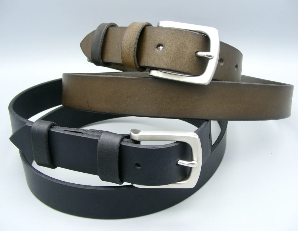 - Opasek z pravé hovězí kůže síly 3,5-4 mm a velmi kvalitní, pevné spony z kartáčované (matné) nerezové oceli.