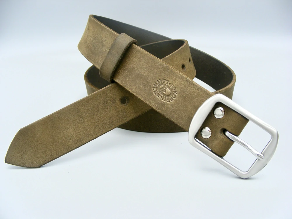 - Opasek z pravé hovězí kůže síly 3,5-4mm a velmi kvalitní, pevné spony z kartáčované (matné) nerezové oceli.